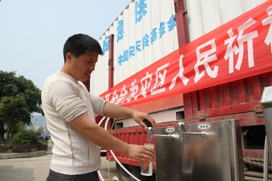 4月20日,地震災(zāi)情發(fā)生的當(dāng)天,南京水杯子分質(zhì)供水公司*向我會表達(dá)了向災(zāi)區(qū)無償捐贈價值500萬元的10臺凈水設(shè)備的意愿。我會根據(jù)雅安地震災(zāi)區(qū)的實際情況,馬上聯(lián)系了蘆山縣和天全縣,作為首批凈水設(shè)備受捐地,立刻組織運輸。在蘆山縣水務(wù)局的協(xié)調(diào)下,首臺凈水設(shè)備車已于4月24日在蘆山縣投入使用。同時,第二批兩臺凈水設(shè)備已于4月27日運抵天全縣,并由天全縣抗震救災(zāi)指揮部統(tǒng)一協(xié)調(diào)安置使用。