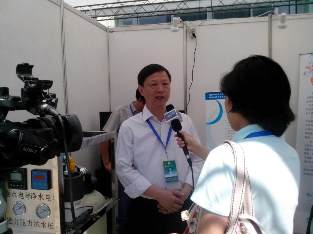 上圖為公司董事長講解“水杯子海水淡化移動車”